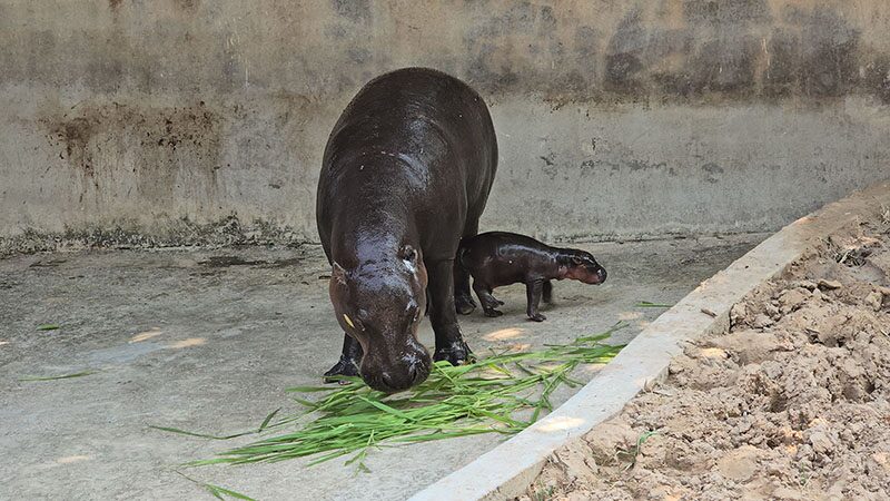 นางทิพาวดี กล่าวต่อว่า ซึ่งฮิปโปโปเตมัสแคระทั้ง 2 ตัว ได้เทียบคู่และเริ่มผสมพันธุ์กันตั้งแต่วันที่ 20 ก.ย. 2568 และใช้ระยะเวลาในการตั้งท้องประมาณ 180 วันถึง 210 วัน จนกระทั่งตกลูกในวันที่ 5 เม.ย. ที่ผ่านมา เป็นตัวที่ 6 ของสวนสัตว์ขอนแก่น