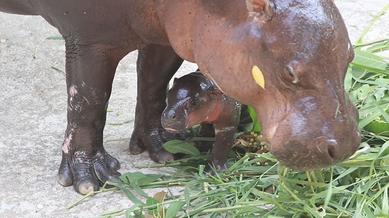 นางทิพาวดี กล่าวอีกว่า สำหรับลูกฮิปโปโปเตมัสเกิดใหม่ยังไม่ทราบเพศ อยู่ภายใต้การดูแลสัตวแพทย์ ทั้งนี้ ลูกฮิปโปโปเตมัสแคระตัวดังกล่าวยังมีศักดิ์เป็นน้องของหมูด้วงฮิปโปโปเตมัสแคระขวัญใจนักท่องเที่ยว และเป็นหลานของหมูเด้ง สวนสัตว์เปิดเขาเขียว จ.ชลบุรี ซึ่งเป็นที่รู้จักอย่างกว้างขวาง สร้างความน่ารักและความผูกพันให้กับแฟนคลับสัตว์ทั่วประเทศ"