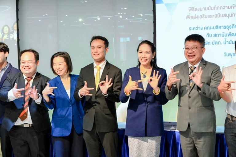 รองศาสตราจารย์ ดร.เพ็ญศรี เจริญวานิช คณบดีคณะบริหารธุรกิจและการบัญชี มข. กล่าวว่า คณะบริหารธุรกิจและการบัญชี ได้มุ่งมั่นดำเนินการตามยุทธศาสตร์ Education Transformationและ Digital Transformation ของมหาวิทยาลัย ภายใต้การนำของท่านอธิการบดี รศ.นพ.ชาญชัย พานทองวิริยะกุล จึงได้ค้นหากัลยาณมิตรที่จะร่วมผลักดันเพื่อให้ยุทธศาสตร์ดังกล่าวสำเร็จได้ และพบว่าสถาบันพัฒนาศักยภาพผู้นำและธุรกิจ บริษัท ปตท.น้ำมันและการค้าปลีก จำกัด (มหาชน) ซึ่งเป็น ศูนย์ฝึกอบรมให้บริการด้านวิชาการในหลักสูตรที่เป็นองค์ความรู้ที่สำคัญของธุรกิจน้ำมันในทุกๆ ด้าน ที่เป็นพื้นฐานของธุรกิจที่อยู่ภายใต้การดำเนินงานของธุรกิจน้ำมัน ตั้งแต่การตลาดค้าปลีก การตลาดพาณิชย์ โดยมุ่งเน้นทั้งในส่วนของน้ำมันและธุรกิจเสริมภายในสถานีบริการ ตลอดจนความรู้ทางด้านเทคนิคและเชิงปฏิบัติการอื่น ๆ ซึ่งเป็นศูนย์ฝึกอบรมที่ช่วยเพิ่มเติมความรู้และประสบการณ์เพื่อการเติบโตร่วมกันอย่างยั่งยืน