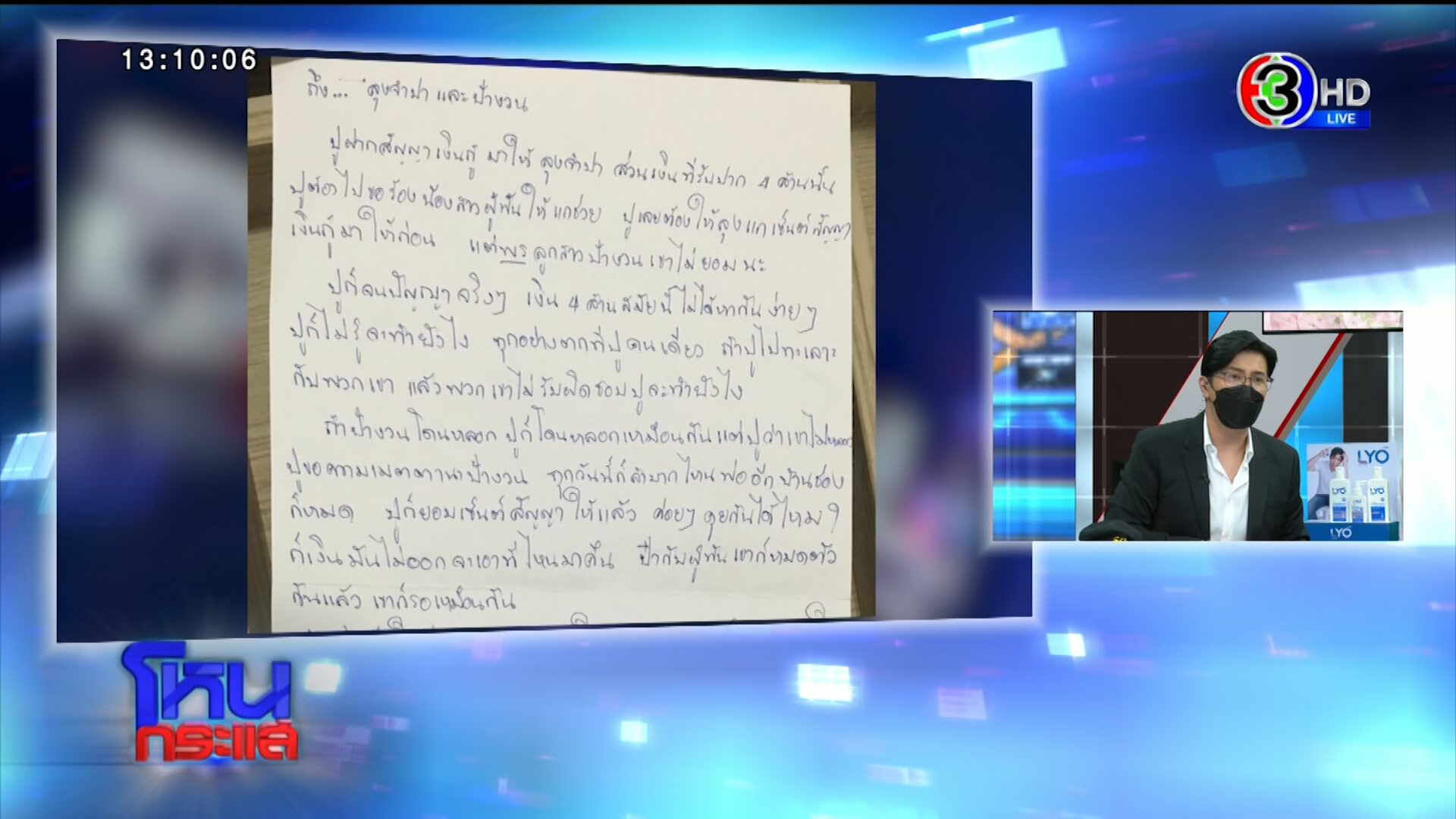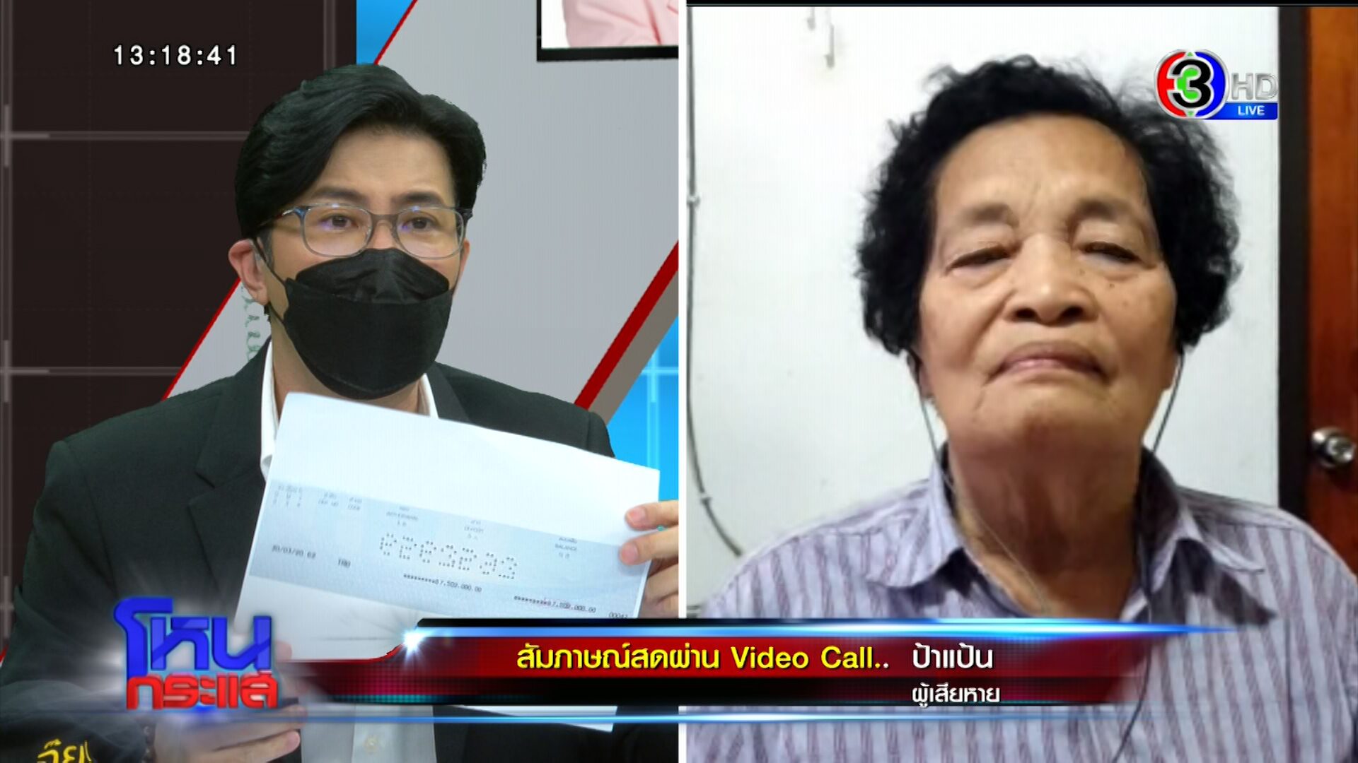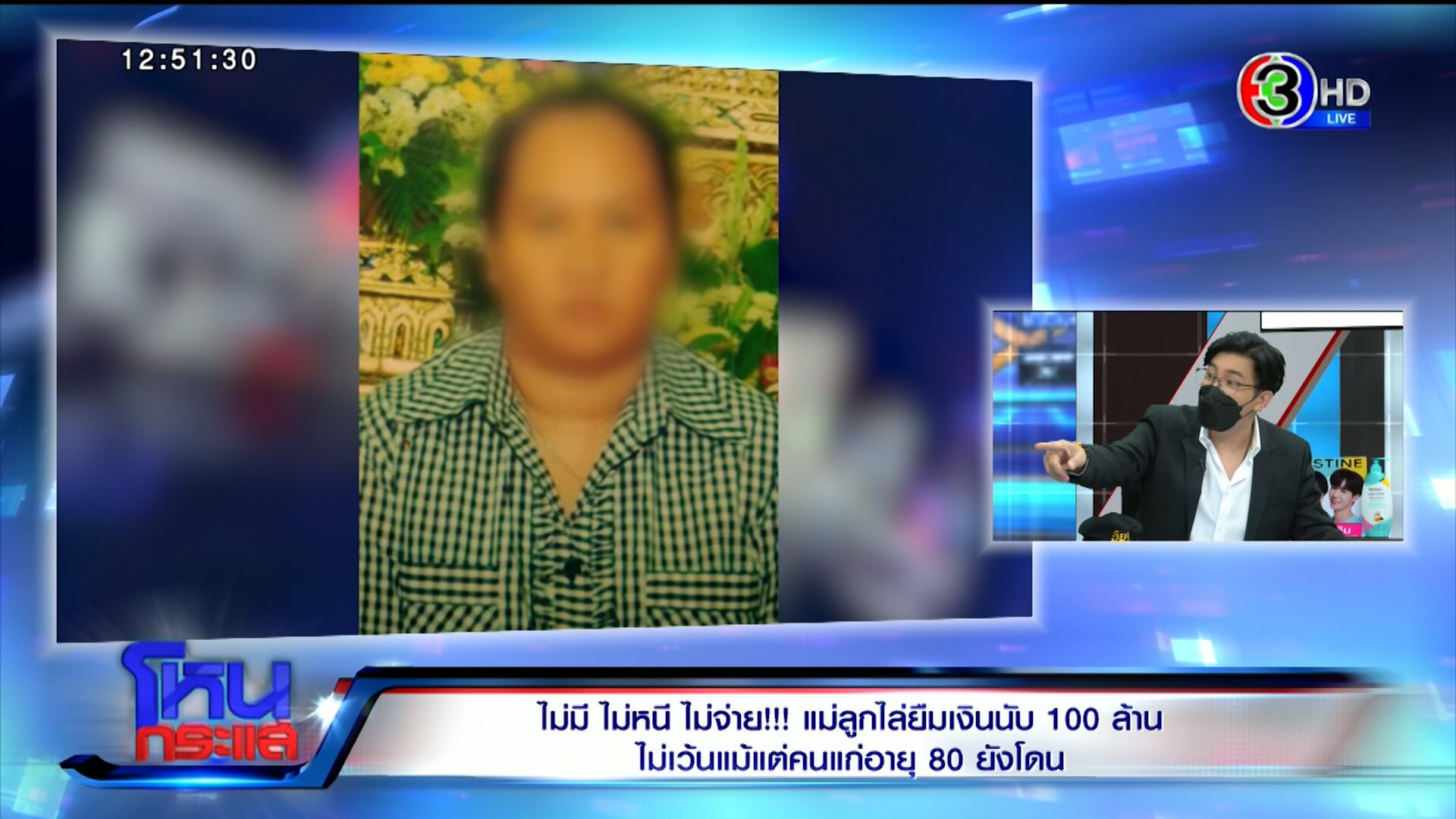 รายการโหนกระแสวันที่ 4 พ.ย. 65 ดำเนินรายการโดย “หนุ่ม กรรชัย กำเนิดพลอย” ผลิตในนามบริษัท ดีคืนดีวัน จำกัด ออกอากาศทุกวันจันทร์-ศุกร์ เวลา 12.35 น. ทางช่อง 3 กดเลข 33 ได้สัมภาษณ์ แหม่ม คนเลี้ยงดูและเป็นผู้เสียหาย , อ๊อฟ - อ้อ - เฟิร์น ผู้เสียหาย รวมทั้ง ทนายแก้ว ดร.มนต์ชัย จงไกรรัตนกุล ในกรณีแม่ลูกคู่หนึ่งเดินสายขอยืมเงินคนใกล้ตัว ทั้งญาติ เพื่อน ไม่เว้นแม้แต่คนแก่อายุ 88 ปี ยอดความเสียหายรวมเกือบ 100 ล้าน โดยอ้างนำเงินไปลงทุน สุดท้ายไม่มีเงินคืน อ้างไม่มี ไม่หนี ไม่จ่าย บางรายหมดตัว ทั้งเงิน ทั้งที่ บางรายสูญเงินไปถึง 60 ล้านก็มี