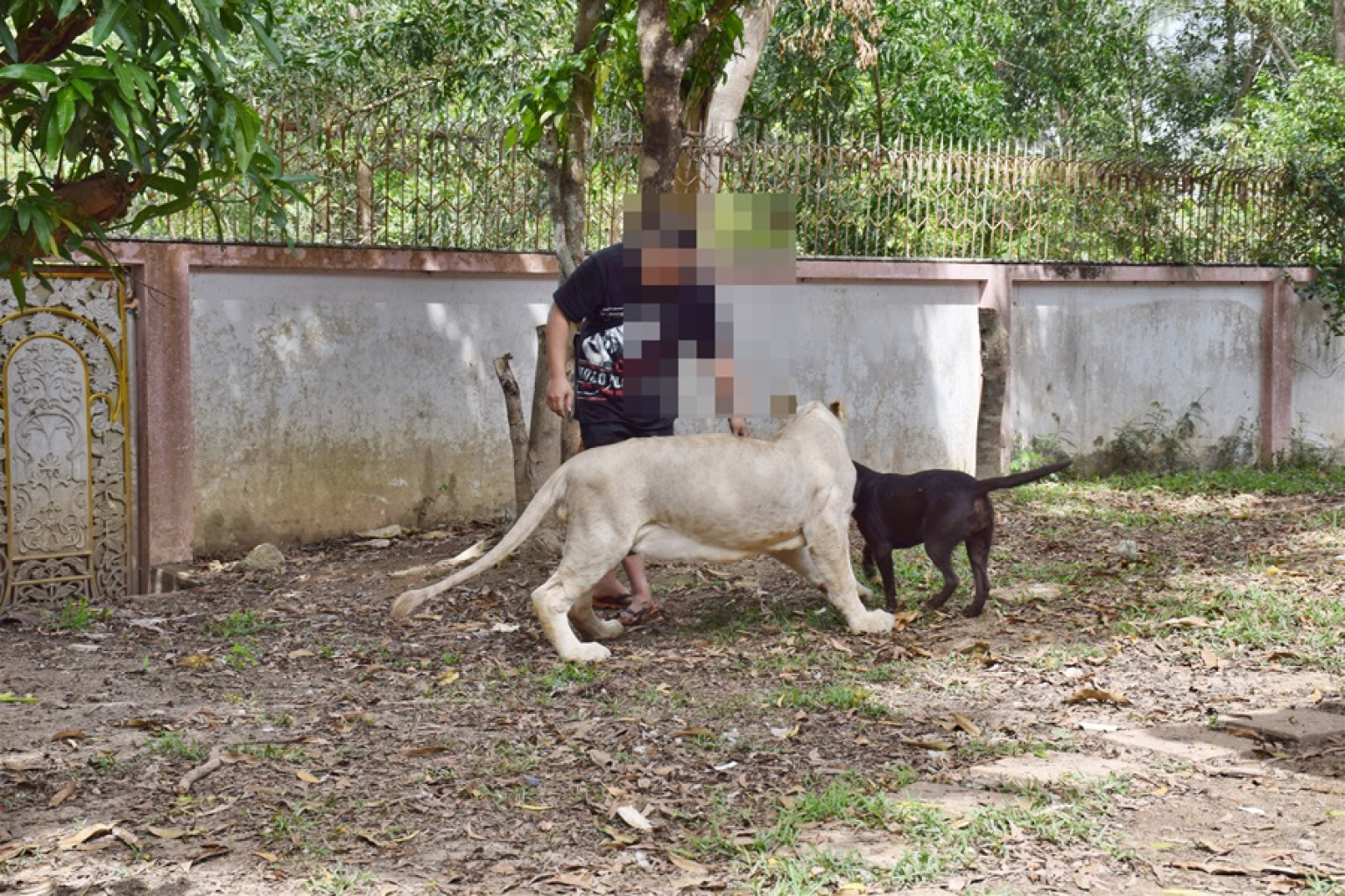 โดยไม่ได้แจ้งความครอบครองตามที่กฎหมายกำหนด ตามมาตรา 18 พร้อมด้วยของกลางที่ตรวจพบภายในบ้าน ลูกเสือโคร่งจำนวน 1 ตัวและสิงโตเพศผู้ อายุ 3 ปี ชื่อ