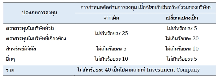 วงเงินลงทุน คำนวนตามเกณฑ์การได้มาซึ่งสินทรัพย์ และเกณฑ์การคำนวน Investment Company