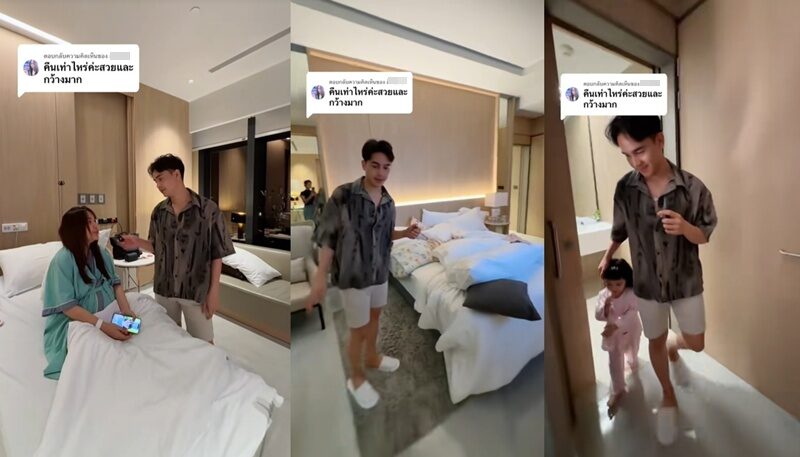 พร้อมทั้งรีวิว พาไปชมส่วนต่างๆของห้องพัก เจนนี่ พร้อมอธิบาย“ห้องนี้เป็นห้องรอยัล ไทป์สูงสุดของรพ. ติดกันเป็นห้องนอนญาติ มีเตียงใหญ่ มีทีวี มีห้องน้ำส่วนตัว มีตู้เสื้อผ้า อีกห้องติดกันก็เป็นห้องนั่งเล่น ห้องทานอาหาร แบบใหญ่ พร้อมวิวแบบพาโนรามา ถือว่าคุ้มค่าราคา 5 แสนกว่าบาทรวมคลอด”