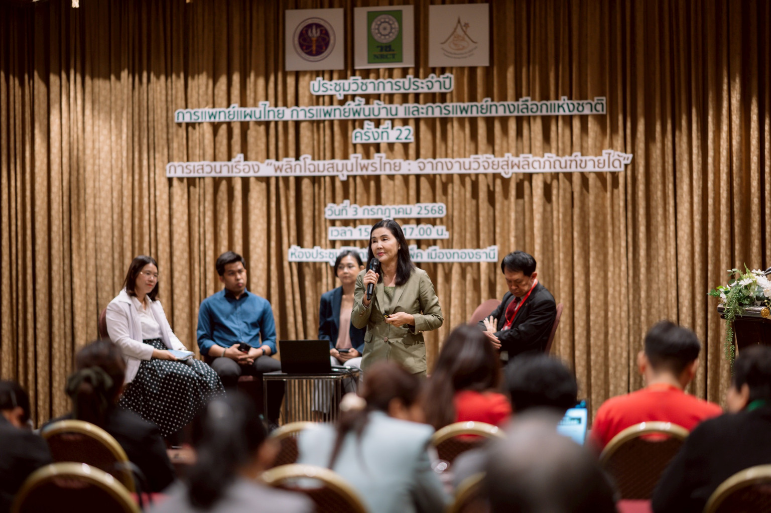รศ.ดร.พรรณวิภา กฤษฎาพงษ์ ประธานกรรมการบริหาร บริษัท สเปเชี่ยลตี้ เนเชอรัล โปรดักส์ จำกัด (มหาชน) หรือ SNPS ได้รับเกียรติเข้าร่วมเสวนาของสำนักงานการวิจัยแห่งชาติ (วช.) ในหัวข้อ “พลิกโฉมสมุนไพรไทย จากงานวิจัยสู่ผลิตภัณฑ์ขายได้” เมื่อวันที่ 3 กรกฎาคม 2568 ณ ศูนย์แสดงสินค้าและการประชุมอิมแพ็ค เมืองทองธานี จังหวัดนนทบุรี ภายใต้งานมหกรรมสมุนไพรแห่งชาติ ครั้งที่ 22