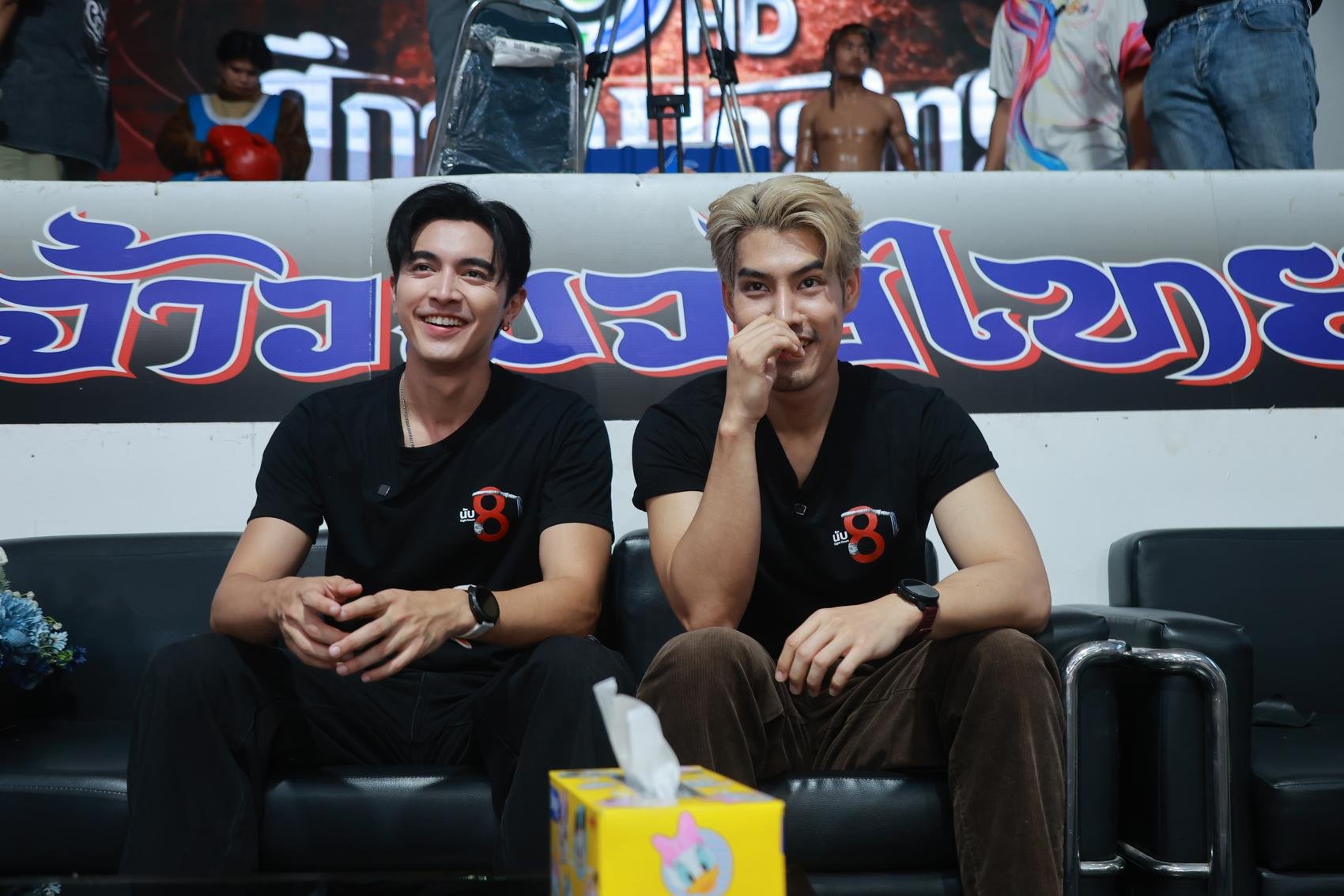 ด้าน อ๋อง เสริมต่อว่า “ได้มาอยู่ในบรรยากาศจริงแบบนี้ตื่นเต้นจริง ๆ เราแทบจะไม่ได้คุยกันเลยมัวแต่เชียร์มวย ถือว่าได้เปิดประสบการณ์อะไรใหม่ ๆ แอบคิดถึงตอนที่อยู่ในกองละคร นับ8 เหมือนกัน เพราะช่วงที่ต้องเตรียมตัวเราก็ต้องซ้อมฟิตร่างกายเหมือนนักมวยจริง ๆ”
