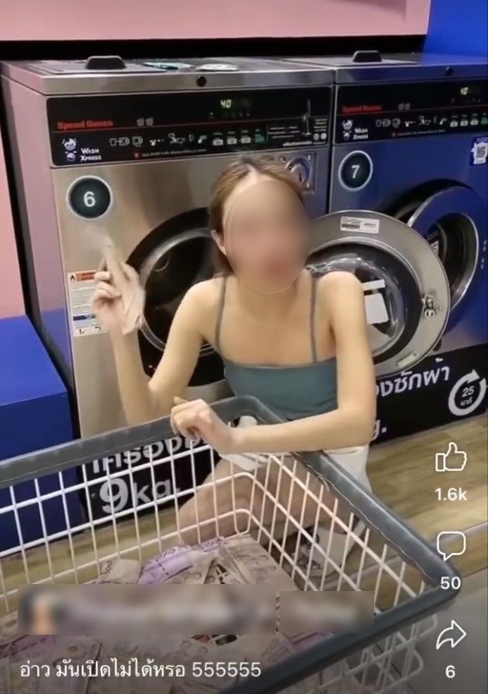 โซเชียลจวกเละ! แม่ค้าเซเลป ทำคอนเทนต์ เอาแบงค์ไปซักตู้หยอดเหรียญ แถมพยายามเปิดฝาขณะเครื่องทำงาน ชาวเน็ตหวั่น เป็นตัวอย่างที่ไม่ดีให้แก่เยาวชน