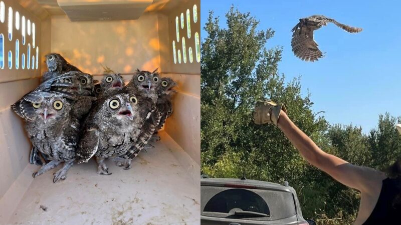 เจ้าหน้าที่อนุรักษ์สัตว์ป่าปล่อย แก๊งนกฮูก 9 ตัวคืนสู่ป่า หลังเก็บมาฟักแต่เด็ก ทำตื่นตาตื่นใจจนเป็นไวรัล