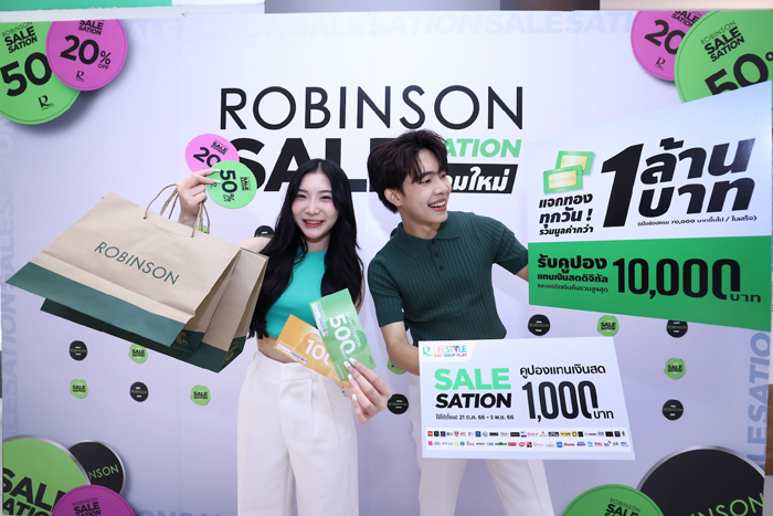 o ประเดิมด้วยบิ๊กแคมเปญเซลแห่งปี “ROBINSON SALESATION” (โรบินสัน เซลเซชั่น) ที่มาพร้อมอภิมหาความคุ้มที่โลกต้องจำ! แจกทองทุกวันรวมมูลค่ากว่า 1 ล้านบาท!! รับคูปองแทนเงินสดดิจิทัลและเครดิตเงินคืนรวมสูงสุด 10,000 บาท พร้อมด้วยปรากฏการณ์สติ๊กเกอร์ส่วนลด ตั้งแต่วันที่ 20 ต.ค. 66 – 31 ต.ค. 66 ที่ห้างโรบินสันทุกสาขา และทุกช่องทางการช้อปปิ้งสุดสะดวกของห้างฯ คาดการณ์ยอดขายโตกว่า 15% เมื่อเทียบกับช่วงเดียวกันของปี 65