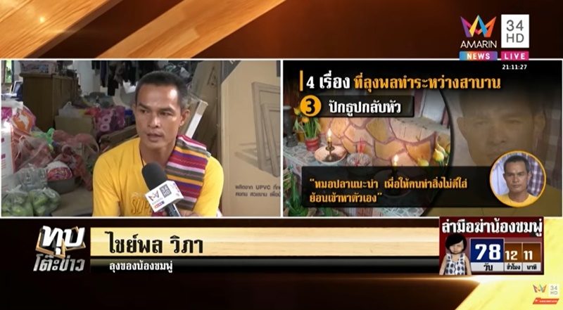ลุงพล เผยกรณีพ่อน้องชมพู่มองมาที่ตัวเองตลอดว่า เห็นพ่อชมพู่มองหน้าเลยถามว่ามองทำไม สังเกตเหมือนเขากำลังคิดอะไรบางอย่าง เหมือนจ้องมองอะไร ยอมรับว่าเขาแปลกๆ จึงถามไป พูดติดตลกว่าหล่อไหม แต่เขาไม่ขำด้วย ที่ผ่านมาไม่เคยมีปัญหากับเขา ไม่เคยมีอะไรขัดแย้งไปก่อเหตุ