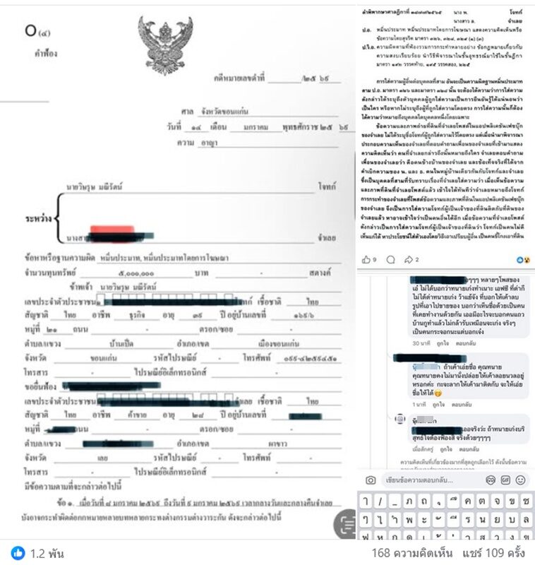 “ชอบโพสต์กฎหมาย ชอบเอากฎหมายมาขู่ว่าจะฟ้องอย่างนั้นอย่างนี้ ปรึกษาคนนั้นคนนี้ เดี๋ยวสอนกฎหมายให้ แต่ค่าเรียนแพงหน่อยนะ โทษคดีนี้มีทั้งจำคุกและปรับ และมีเรียกค่าเสียหาย 5,000,000 บาท ด้วย รายละเอียดของฎีกาอยู่ในโพสต์นี้แล้ว เข้าไปอ่านนะ”