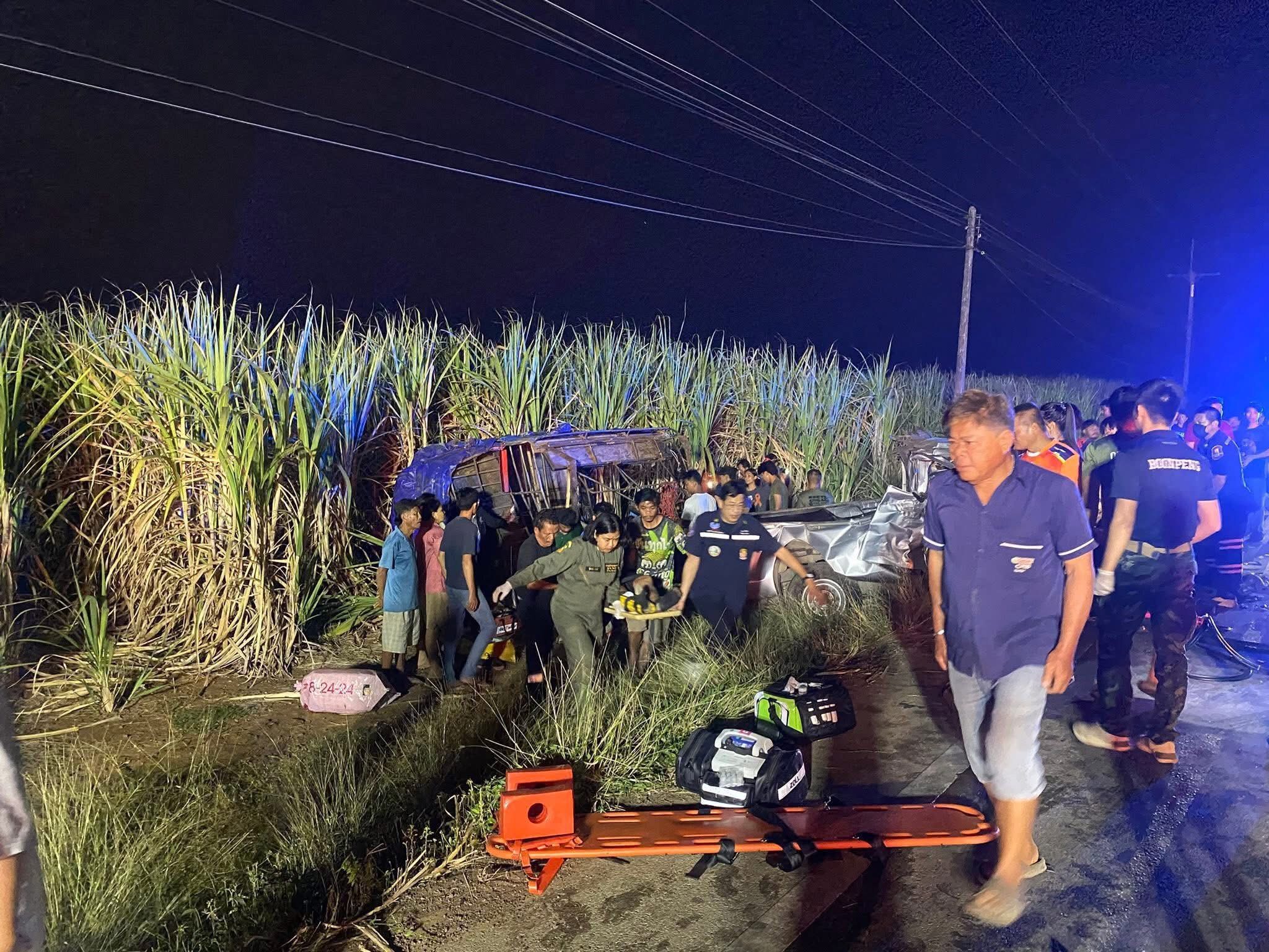กระบะขนแรงงาน ชนประสานงาสนั่น เสียชีวิต 5 ราย เจ็บเพียบ เผยหนึ่งในผู้เสียชีวิตท้องแก่ใกล้คลอด