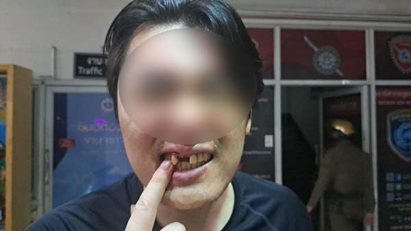 ขณะที่ผู้บาดเจ็บพยายามโชว์อาการบาดเจ็บ ฟันหน้าหักหลุดออกมาจากปากถึง 3 ซี่ อีก 2 ซี่ โยก ทำท่าจะหลุดออกมาด้วย ริมฝีปากบวมมีเลือดไหลออกจากช่องปาก เข้าแจ้งความร้องทุกข์ เอาผิดกับผู้ก่อเหตุอย่างถึงที่สุด