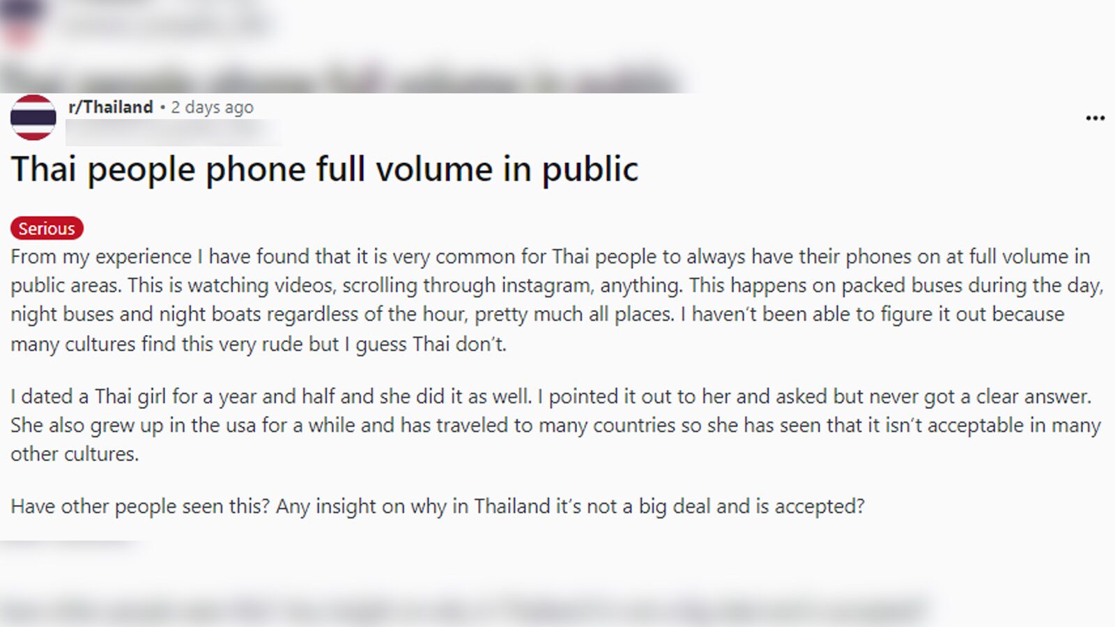 ชาวต่างชาติสงสัย ทำไมคนไทยชอบเล่นโทรศัพท์ แล้วเปิดเสียงดังในที่สาธารณะ แบบไม่มีใครห้ามแถมมองเป็นเรื่องปกติ