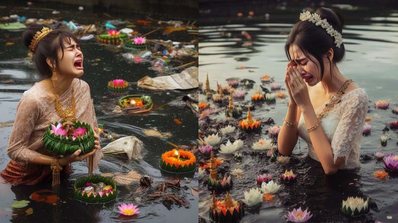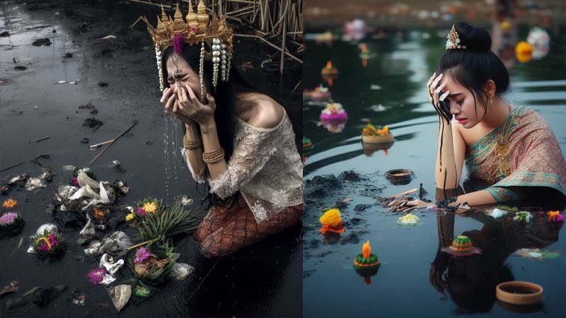 จุกอก! เมื่อ AI ทำภาพ 'พระแม่คงคาร่ำไห้' สะท้อนอีกด้านใน เทศกาลลอยกระทง หวังผู้คนตระหนักถึงปัญหาสิ่งแวดล้อม ละการสร้างขยะจากกระทง