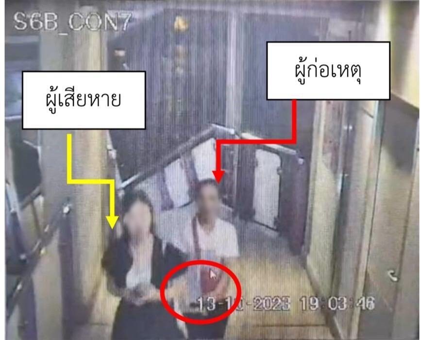 จากการตรวจสอบกล้องวงจรปิด พบว่ามีหญิงอายุประมาณ 40 ปี ตัวเล็ก สวมเสื้อสีขาว พยายามเดินตามหลังผู้เสียหายในระยะประชิด และเมื่อสบโอกาส จึงใช้มือล้วงเอาโทรศัพท์มือถือของผู้เสียหายที่อยู่ในกระเป๋าสะพาย และจากนั้นเดินหลบหนีไป