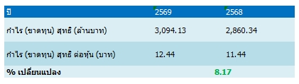 โดยบริษัทมีกำไรสุทธิส่วนที่เป็นของบริษัทใหญ่รวมทั้งสิ้น 3,094 ล้านบาท คิดเป็นกำไรต่อหุ้น 12.44 บาท เติบโตขึ้นร้อยละ 8.2 เมื่อเทียบกับช่วงเดียวกันของปีก่อน สำหรับผลงานเฉพาะไตรมาสที่ 4 ของปีบัญชี 2568 มีกำไรสุทธิ 912 ล้านบาท เพิ่มขึ้นร้อยละ 25.8 เมื่อเทียบกับช่วงเดียวกันของปีก่อน และขยายตัวร้อยละ 47.6 เมื่อเทียบกับไตรมาสก่อนหน้า