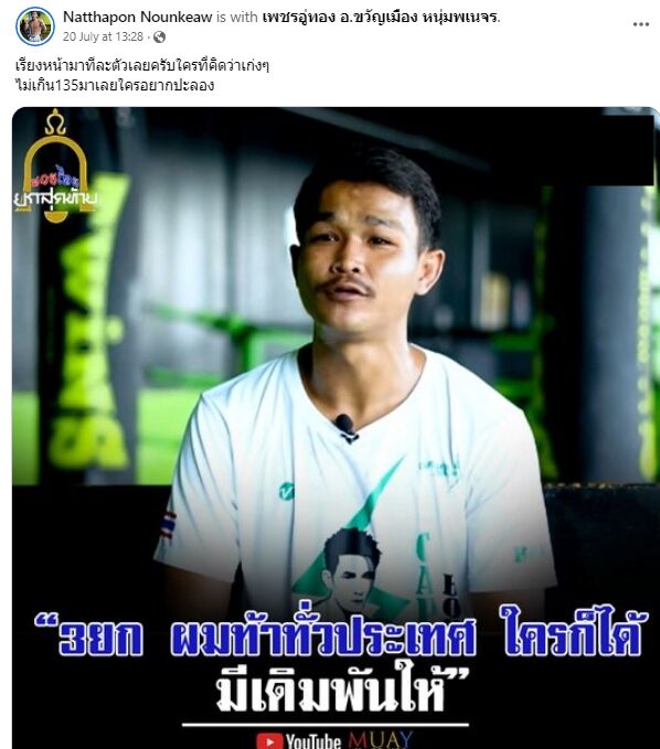 นอกจากนี้ เพชรอู่ทอง ยังโพสต์ข้อความผ่านทางเฟซบุ๊ก ระบุว่า เรียงหน้ามาทีละตัวเลยครับใครที่คิดว่าเก่งๆ ไม่เกิน 135 มาเลย ใครอยากปะลอง
