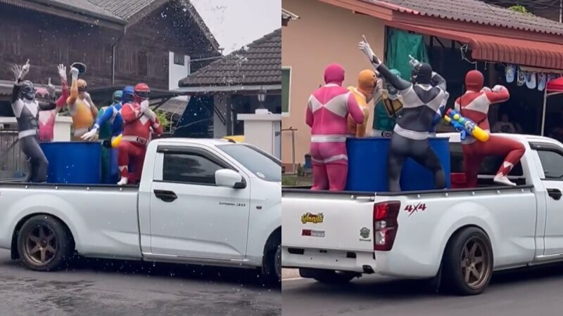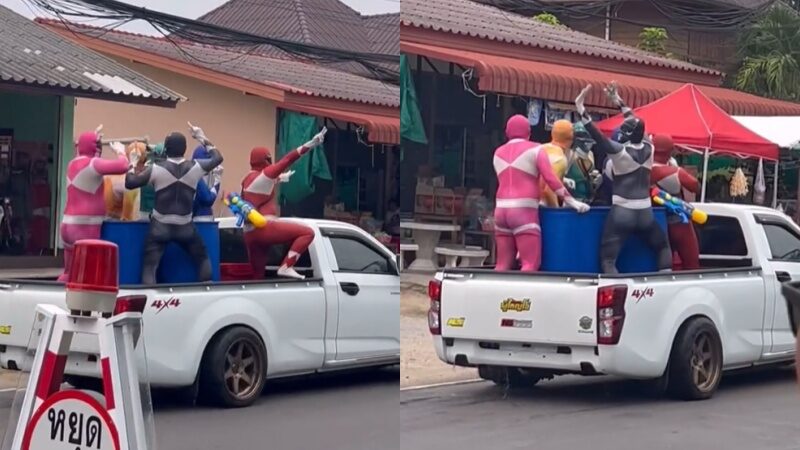 จ๊าบของแท้! พาวเวอร์เรนเจอร์โผล่เล่นน้ำ โชว์รำตึงๆ ทำสงกรานต์คึกคัก แถมคนแห่แซวเพียบ ยอดมนุษย์กินเเซ่บ