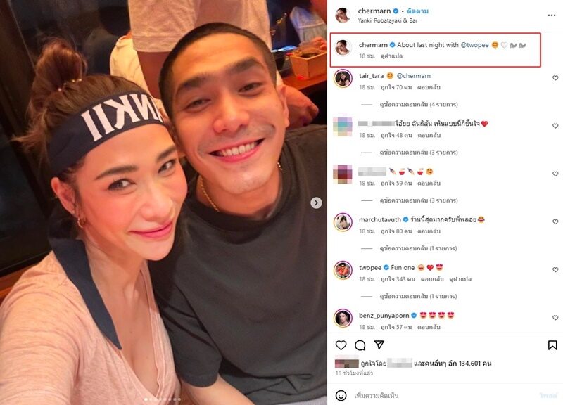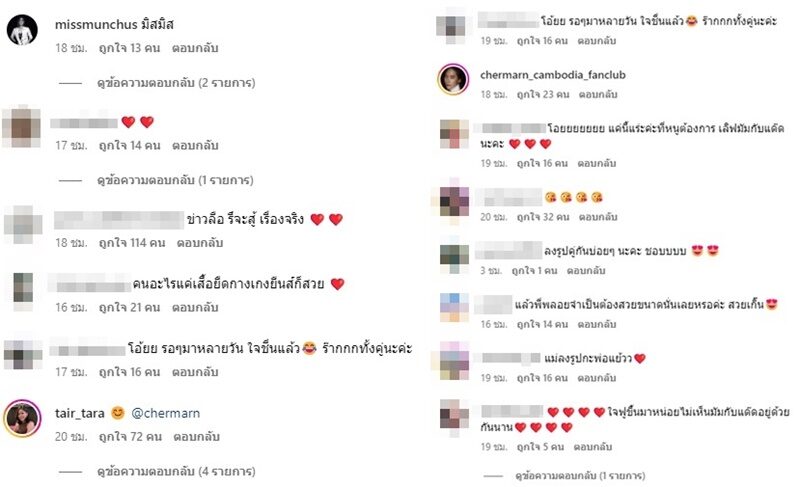 *ขณะที่หนุ่มโต้งก็มาคอมเมนต์ด้วยว่า “Fun one”* ด้านแฟนๆ ก็คอมเมนต์เห็นแบบนี้ก็ใจชื้น อาทิ โอ้ยย ฉันก็ลุ้น เห็นแบบนี้ก็ชื่นใจ , จริงคะ ส่องIGตลอดเลยอ่า เห็นแบบนี้ชื่นใจ ดีใจแทน อิอิ , เหมือนกันเลยค่ะ พอทั้งคู่ลงสตอรี่ รีบกดดูตลอด