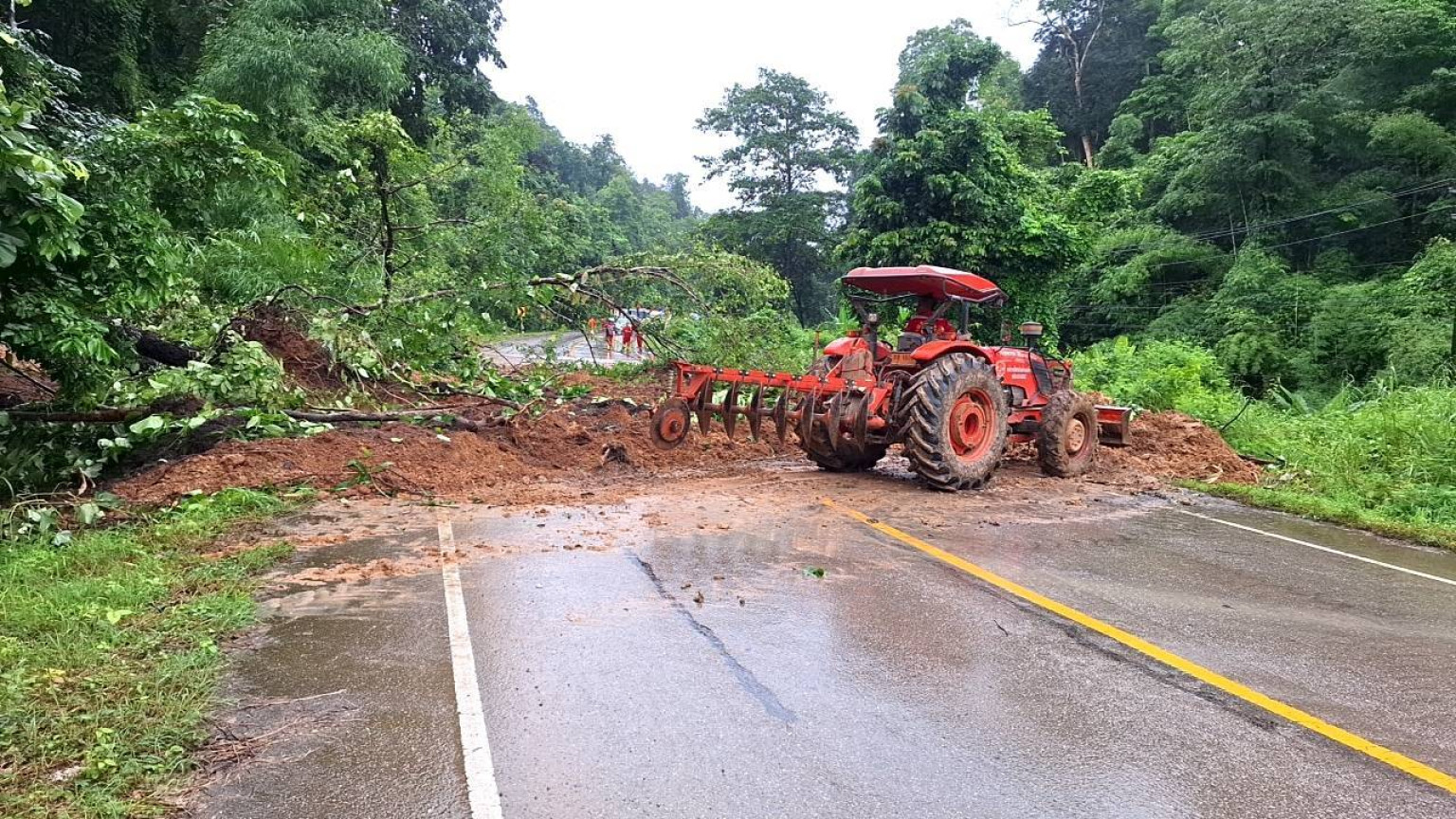 อ.ท่าสองยาง พายุฝนตกหนัก ต้นไม้ใหญ่ล้มขวางถนน ดินถล่ม "นายอำเภอนพ" ลงพื้นที่ สั่งการช่วยเหลือชาวบ้าน