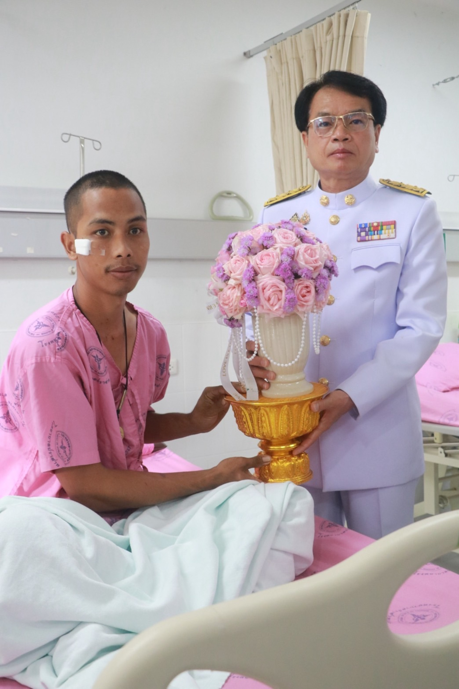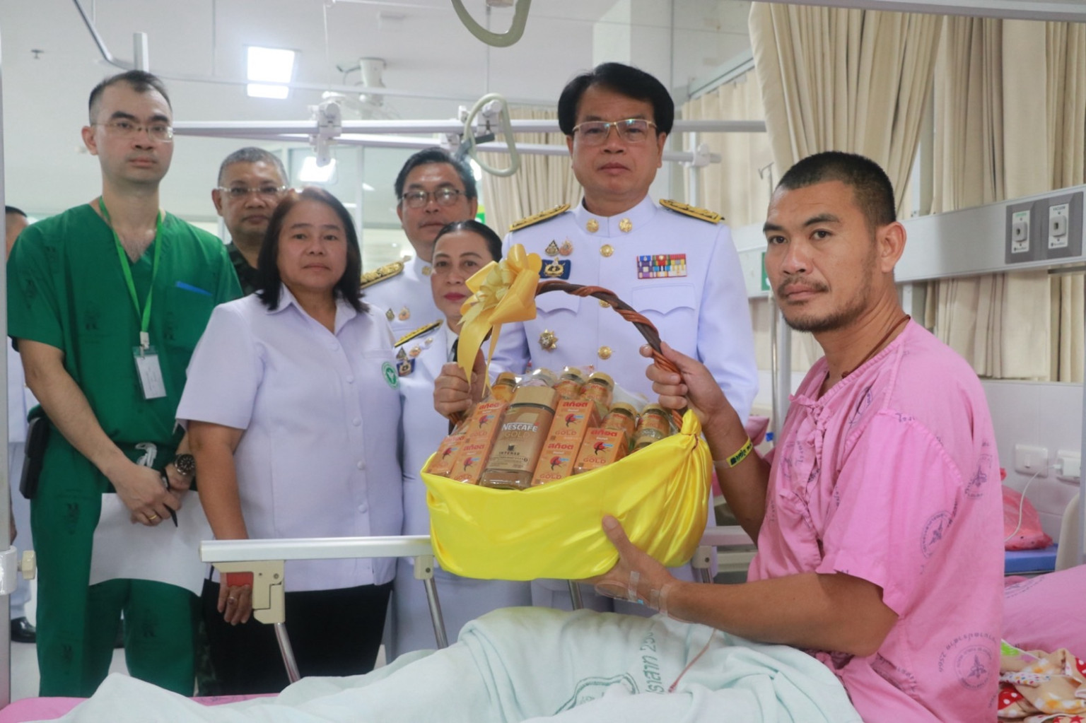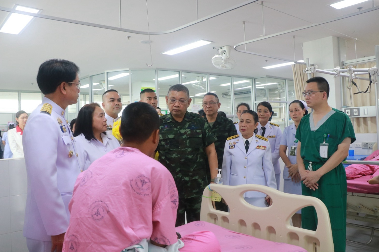วันที่ 29 กรกฎาคม 2568 เวลา 09.00 น. พระบาทสมเด็จพระเจ้าอยู่หัว ทรงพระกรุณาโปรดเกล้า โปรดกระหม่อมให้ นายชำนาญ ชื่นตา ผู้ว่าราชการจังหวัดสุรินทร์ เชิญดอกไม้และตะกร้าสิ่งของพระราชทาน ของพระบาทสมเด็จพระเจ้าอยู่หัว และสมเด็จพระนางเจ้า ฯ พระบรมราชินี ไปมอบแก่ จ่าสิบเอก จำลอง ทองถม พลทหาร ณัฐพงษ์ ศรีวิไล พลทหารธนพัฒน์ คงเจริญ พลทหาร ชนะชัย ปานสา พลทหาร กิตติพันธ์ ทองศรี และพลทหาร อรรถพล เขียวหลง กำลังพลที่ได้รับบาดเจ็บจากเหตุการณ์ความไม่สงบในพื้นที่จังหวัดชายแดนไทย – กัมพูชา และเข้ารับการรักษาพยาบาล ณ โรงพยาบาลปราสาท อ.ปราสาท จ.สุรินทร์