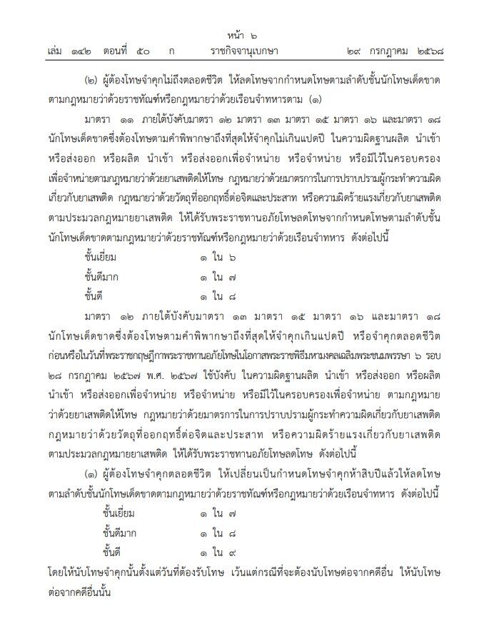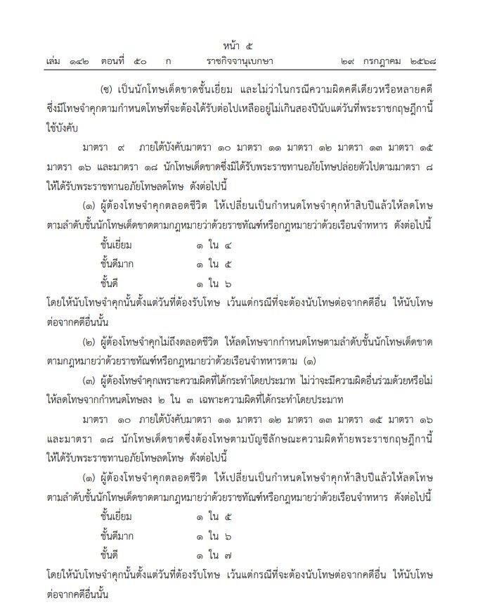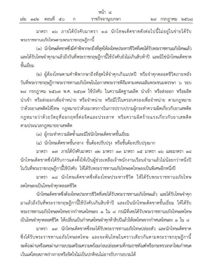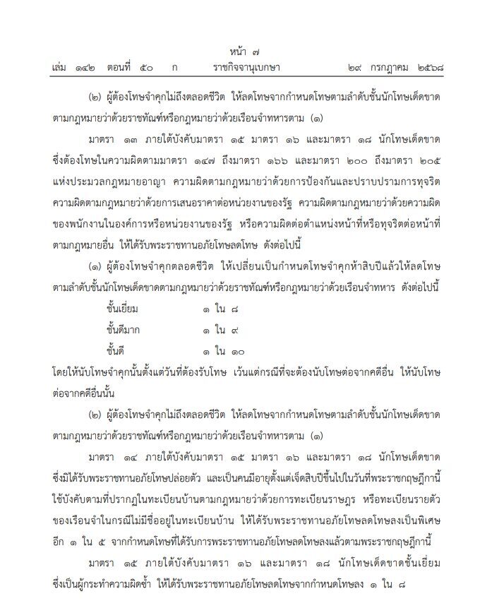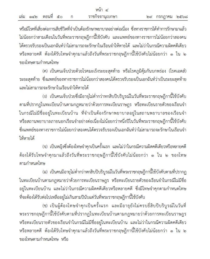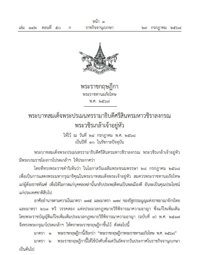 ราชกิจจานุเบกษา เผยแพร่ พระราชกฤษฎีกา พระราชทานอภัยโทษ พ.ศ.2568 ในโอกาสวันเฉลิมพระชนมพรรษา 28 กรกฎาคม 2568