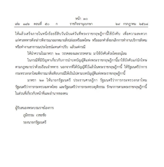 อ่านข่าวต้นฉบับได้ที่ : ราชกิจจานุเบกษา เผยแพร่ พระราชกฤษฎีกา พระราชทานอภัยโทษ พ.ศ.2568
