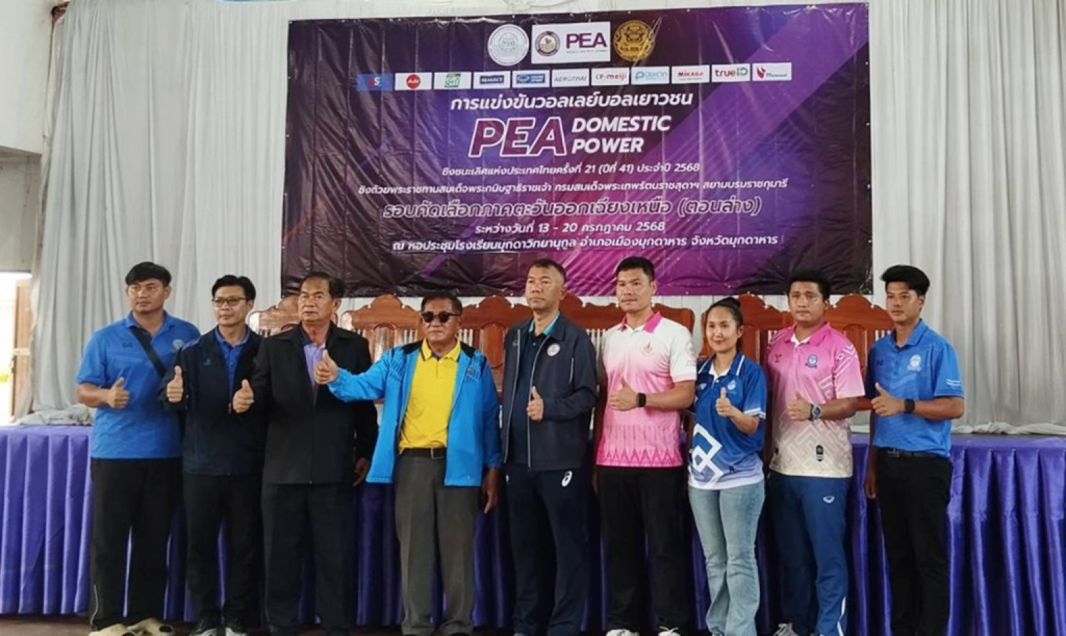 นายวีระศักดิ์ กนกหงส์ ผู้จัดการการไฟฟ้าส่วนภูมิภาคจังหวัดมุกดาหาร กล่าวว่า การไฟฟ้าส่วนภูมิภาค PEA ร่วมกับสมาคมกีฬาวอลเลย์บอลแห่งประเทศไทย จัดแข่งขันกีฬาวอลเลย์เยาวชน PEA-DOMESTIC POWER ชิงชนะเลิศแห่งประเทศไทย อายุไม่เกิน 18 ปี ชิงถ้วยพระราชทานสมเด็จพระกนิษฐาธิราชเจ้า กรมสมเด็จพระเทพรัตนราชสุดาฯ สยามบรมราชกุมารี และโครงการทีมชาติวอลเลย์บอล PEA สอนน้อง ตั้งแต่ปี พ.ศ. 2548 – ปัจจุบัน เพื่อให้เยาวชนไทยมีสุขภาพร่างกายที่แข็งแรง ห่างไกลยาเสพติด เพราะกีฬามีความสำคัญต่อเยาวชนไทย ทั้งในด้านการพัฒนาคุณภาพชีวิต การเสริมสร้างสุขภาพ การสร้างแรงบันดาลใจ สร้างรายได้ และสร้างอาชีพ ทำให้เยาวชนไทยมีวินัย มีความรักสามัคคี ส่งผลดีทั้งด้านร่างกายและจิตใจ ซึ่งที่ผ่านมาการจัดแข่งขันรายการดังกล่าว สามารถสร้างนักกีฬาวอลเลย์บอลหญิงทีมชาติไทยสร้างชื่อเสียงให้กับประเทศชาติและนานาชาติ ซึ่งภาคตะวันออกเฉียงเหนือ (ตอนล่าง) จัดที่จังหวัดมุกดาหาร ระหว่างวันที่ 13 – 20 กรกฎาคม 2568 โดยใช้สองสนามคือ อาคารจงวุฒิเวศย์ สนามกีฬากลางจังหวัดมุกดาหาร และโรงเรียนมุดาวิทยานุกูล