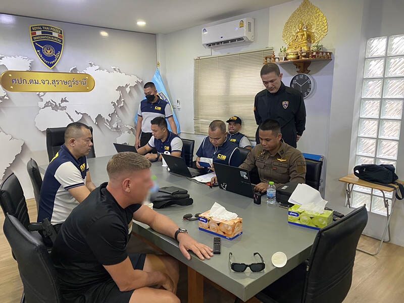 วันที่ 24 พ.ค. 2568 พล.ต.ต.ทรงโปรด สิริสุขะ ผบก.ตม.6 นำกำลังเจ้าหน้าที่กองกำกับการ 5 กองบังคับการปราบปราม (กก.5 บก.ป.) ตรวจคนเข้าเมืองสุราษฎร์ธานี และกองกำกับการสืบสวน กองบังคับการตรวจคนเข้าเมือง 6 (กก.สส.บก.ตม.6) เข้าจับกุม MR.KIEREN DANIEL FARRER THORNTON อายุ 38 ปี ชาวอังกฤษ ซึ่งเป็นผู้ร้ายข้ามแดนตามหมายจับศาลอาญาที่ 524/2568 ลง 19 พ.ค.68
