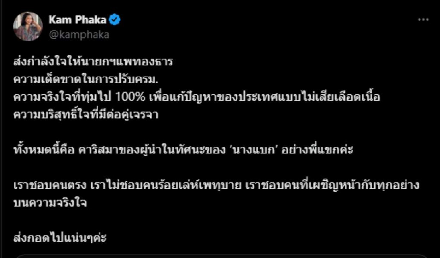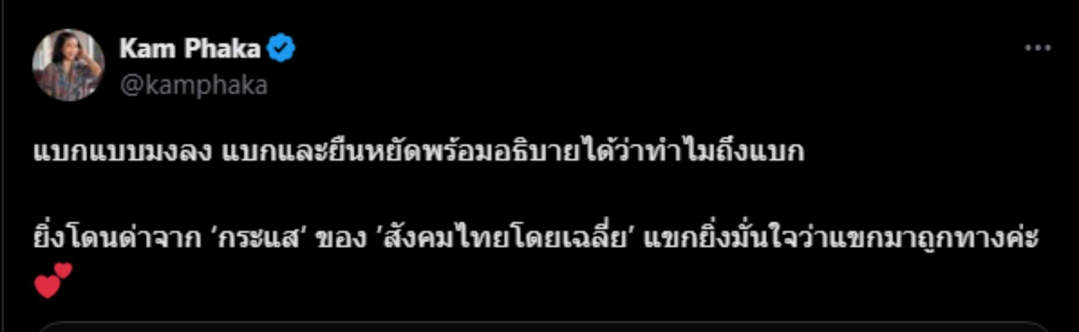 หลังจาก "แขก คำผกา" ลักขณา ปันวิชัย พิธีกรชื่อดัง ผู้สนับสนุนพรรคเพื่อไทย โพสต์ทวีตข้อความผ่านทวิตเตอร์แอปเพคิชั่น X (ทวิตเตอร์) @kamphaka ว่า