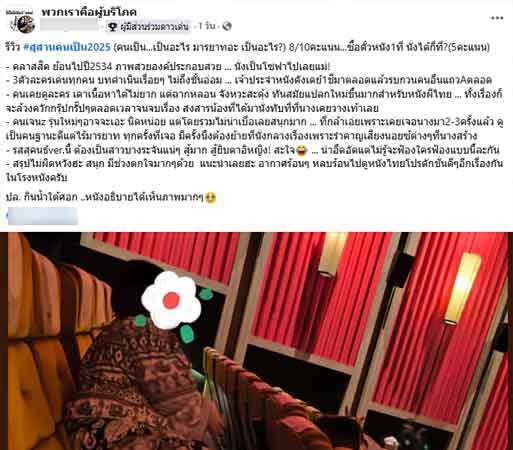 อ่านข่าวต้นฉบับได้ที่ : วิจารณ์สนั่น แต่งตัวดูมีฐานะ ดูหนังแต่ไม่มีมารยาท นั่งยกขาในโรงหนัง สุดทนจนต้องย้ายที่นั่ง