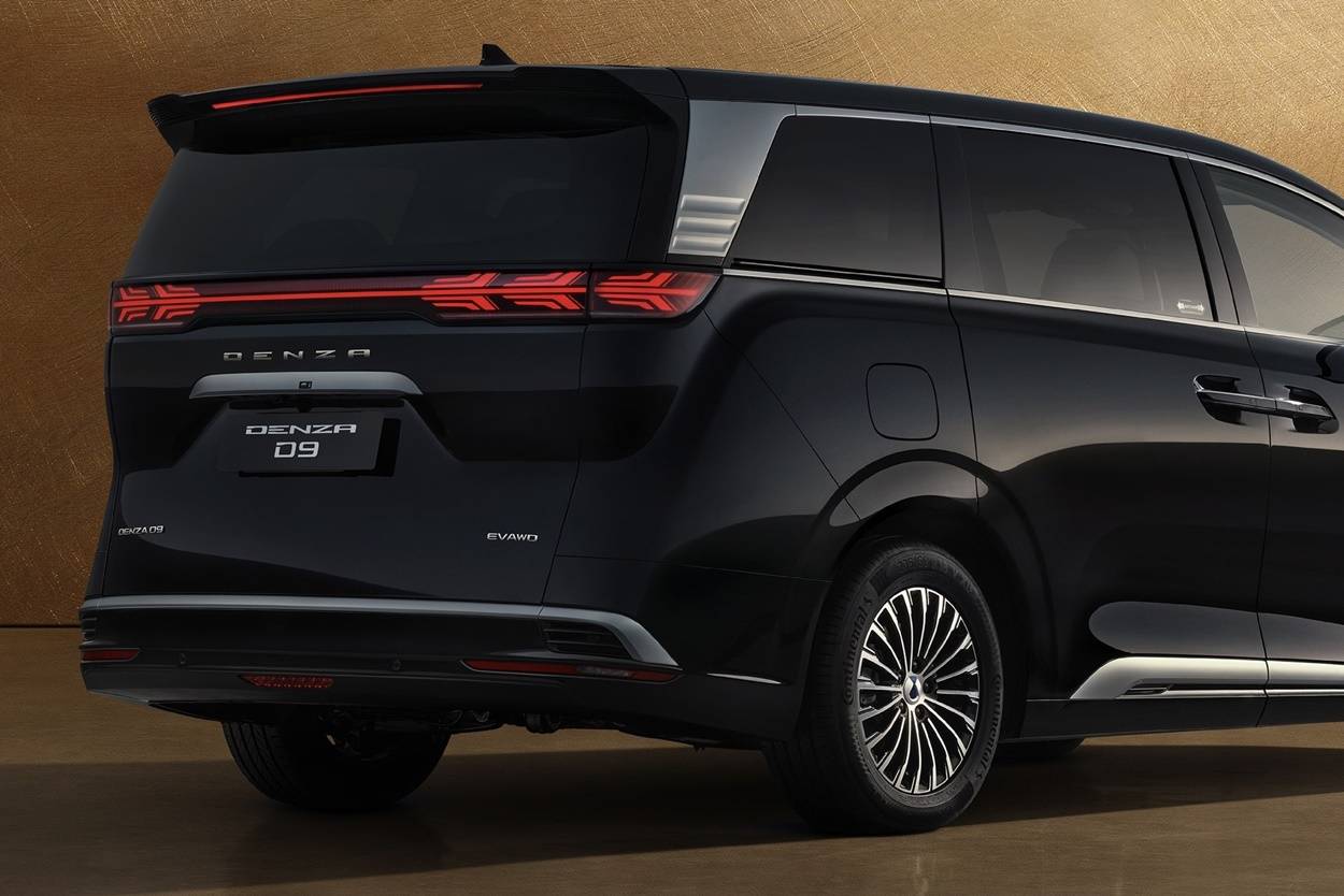 DENZA D9ออกมาเป็นนักฆ่าเพื่อนร่วมชาติอย่าง ZEEKR 009 กับ XPENG X9 รวมถึงฟากญี่ปุ่นอย่าง Toyota Alphard และ Lexus LM หน้าตายังคงเดิมเน้นหรูหราด้วยชุดกระจังหน้าทรงทึบสีเงินแนวตั้ง 12 ซี่ คล้าย Alphard ปะตราโลโก้เด่น พร้อมขอบสีเงินล้อมรอบด้านหน้ารถแบบเต็มๆไฟหน้า LED ดีไซน์หรู ไฟส่องสว่างเวลากลางวัน LED Daytime พร้อมชุดตกแต่งสีเงินที่ขอบกระจก คิ้วชายล่างประตู คิ้วกันชนหลัง ไฟท้ายดีไซน์แนวยาว LED และไฟเลี้ยววิ่ง Sequential หลังคา Dual Panoramic Sunroof