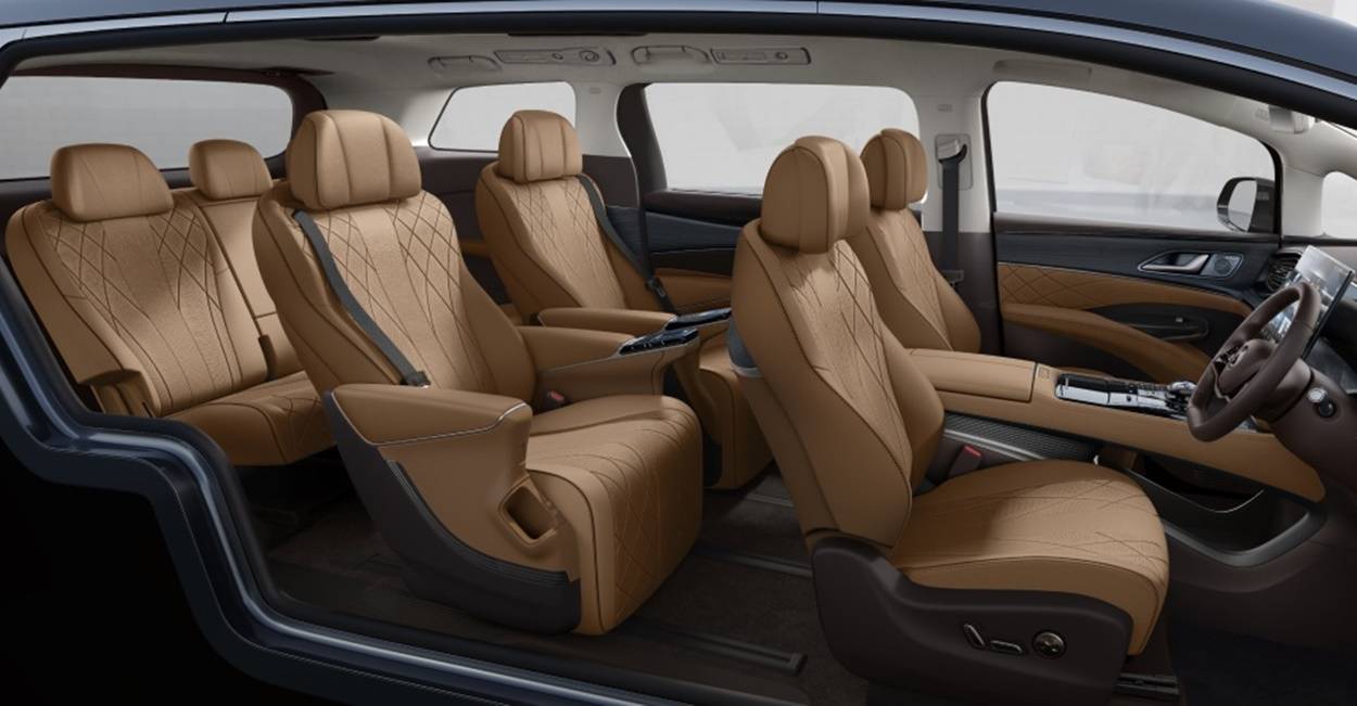 ภายในหรูหราสง่างามเทียบเท่าคู่แข่งตั้งแต่เบาะนั่งหนังแท้ 7 ที่นั่งแบบ NAPPA โดยเบาะนั่งแถวที่สองมาแบบ VIP Captain Seat พร้อมระบบจดจำตำแหน่งการนั่ง (Memory Seats) ระบบนวด เบาะอุ่น ระบายความร้อนควบคุมผ่านหน้าจอ Touch Screen พร้อมช่องวางโทรศัพท์ โต๊ะพับและที่วางแก้ว ตกแต่งด้วยวัสดุหนัง เบาะนั่งคนขับปรับด้วยระบบไฟฟ้า 12 ทิศทาง และฝั่งผู้โดยสารปรับไฟฟ้า 4 ทิศทาง ทุกที่นั่งมีระบบอุ่นเบาะ มีพื้นที่ด้านหลังขนของได้ 410-570 ลิตร กรณีไม่พับเบาะ และถ้าพับเบาะ 2,310 ลิตร ระบายอากาศ และนวดเพื่อผ่อนคลาย