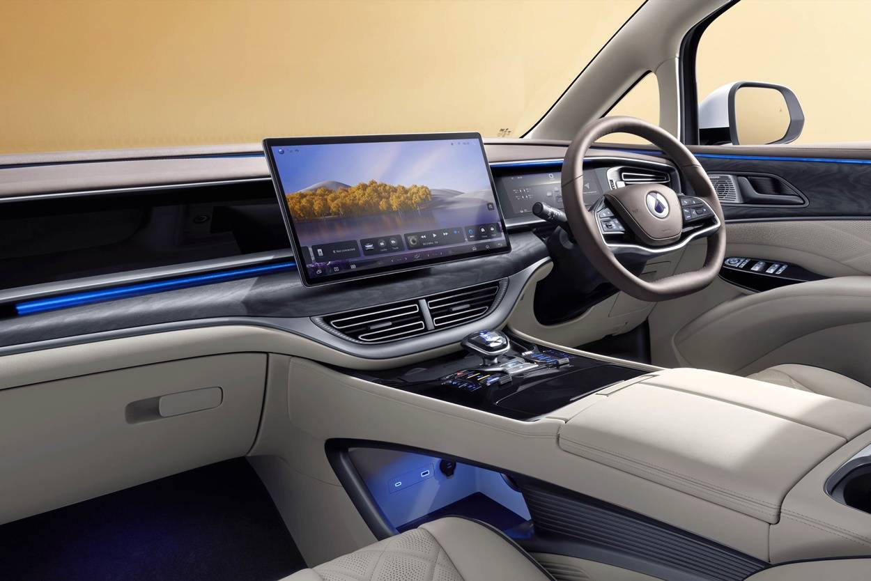 แผงคอนโซลหน้ามีจอสัมผัสขนาดใหญ่ลากเป็นแนวยาวประกอบด้วย จอสัมผัส 15.6 นิ้วรองรับ Apple Car Play และ Android Auto จอหลังเบาะคนขับคู่หน้า 2 จอขนา พร้อมลำโพง DYNAUDIO 14 จุด มีช่องเชื่อมต่อ USB ช่องจ่ายไฟ AC Adaptor 220V มาตรวัด LCD 10.25 นิ้ว พร้อม จอแสดงข้อมูลการขับขี่บนแผงคอนโซลหน้า Head Up Display มีไฟสร้างบรรยากาศภายใน ambient light มากถึง 128 สี กระจกมองหลังปรับแสงอัตโนมัติ ระบบปรับอากาศแบบอัตโนมัติ 3 โซน แยกบริเวณด้านหน้าและหลังอิสระ พร้อมระบบกรองอากาศ PM 2.5 กุญแจนิรภัยแบบอัจฉริยะ พร้อมระบบ Push Start และที่ชาร์จมือถือไร้สาย