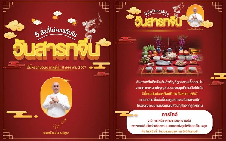 วันที่ 18 สิงหาคม 2567 ตรงกับวันขึ้น 14 ค่ำ เดือน9 วันไหว้สารทจีน ซินแสเป็นหนึ่ง วงษ์ภูดร โพสต์พร้อมทั้งแนะนำว่า
