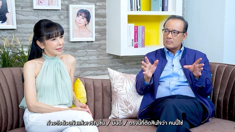 40ปีที่แต่งงาน ตัดสินใจไม่ผิดที่เลือกกันเป็นสามีภรรยา โดยสามีตอบทันทีว่า “ใช่ ชีวิตแต่งงานเป็นบทเรียนสำคัญมาก มันไม่มีตำรา ชื่นชมเขา เพราะเรื่องงานเขาก็จะไม่มาก้าวก่าย การมีสเปซ การให้เกียรติซึ่งกันและกัน ที่สุดแล้วคือการแคร์ความรู้สึกซึ้งกันและกัน ตลอด 24 ชม. อันนี้สำคัญ”