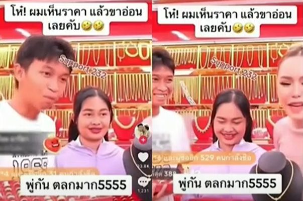 "วันที่ไลฟ์สดกับแม่ตั๊กและออกโปรโมชั่นขายทองจากราคา 3 พันกว่าบาท เหลือ 3 ร้อยกว่าบาทนั้น ทางร้านแจ้งว่าเป็นโปรโมชั่นลดราคา ขายจี้ทองพร้อมสร้อยทอง วันนั้นทางร้านให้พูดตามโพยที่แจ้งไว้ โดยการไปขายทองให้แม่ตั๊กมีคนมาติดต่อให้ไป ซึ่งเป็นการไปขอแม่ตั๊ก พอไปไลฟ์ก็จะเห็นสินค้าเยอะมาก ในจำนวนนั้นก็มีทองด้วย จากนี้ไม่ขอไปไลฟ์ขายทองกับแม่ตั๊กอีกแล้ว"