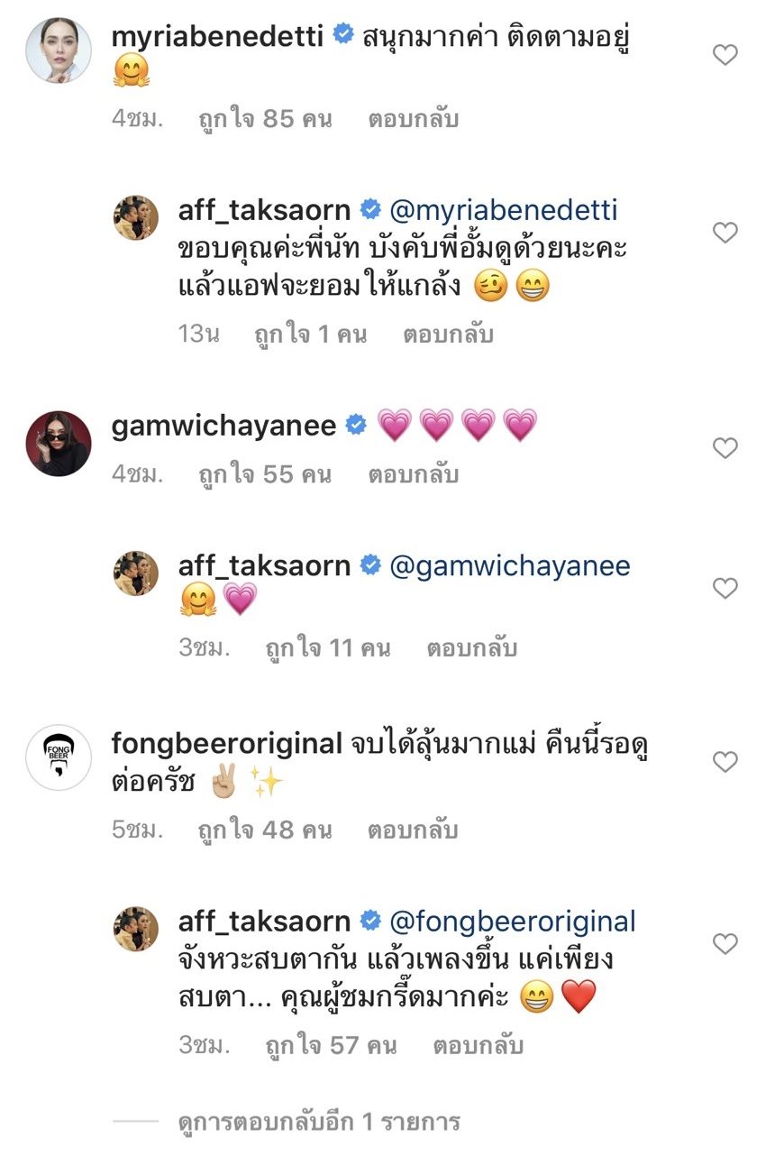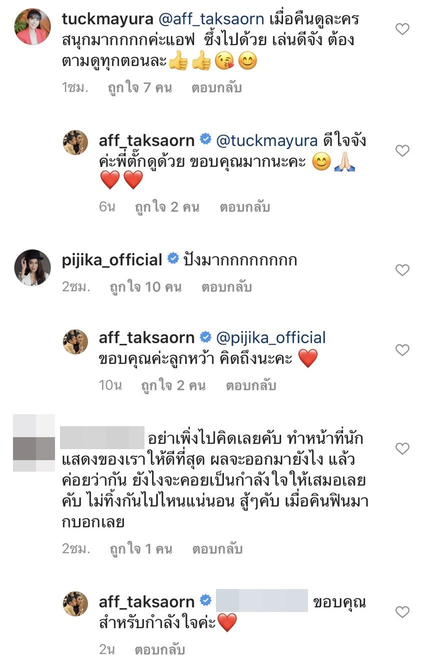 ทั้งนี้ มีเพื่อนๆในวงการ รวมถึงแฟนละคร เข้ามาคอมเมนต์ชื่นชมฝีมือการแสดง พร้อมให้กำลังใจสาวแอฟกันอย่างล้นหลามเลยทีเดียว