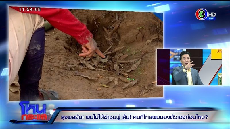 "ผมถามหน่อย ขนาดวันนี้ที่มาออกรายการ ตั้งแต่ตื่นนอน ผมทำอะไรไปบ้างหรือยัง จำได้มั้ยครับ นางย้อมออกมาให้การว่าเห็นรถแบ็กโฮอยู่ที่หลุม มันผ่านไปสองเดือนแล้วนะ ความจำดีขนาดนั้นเลยเหรอ"