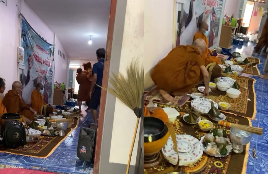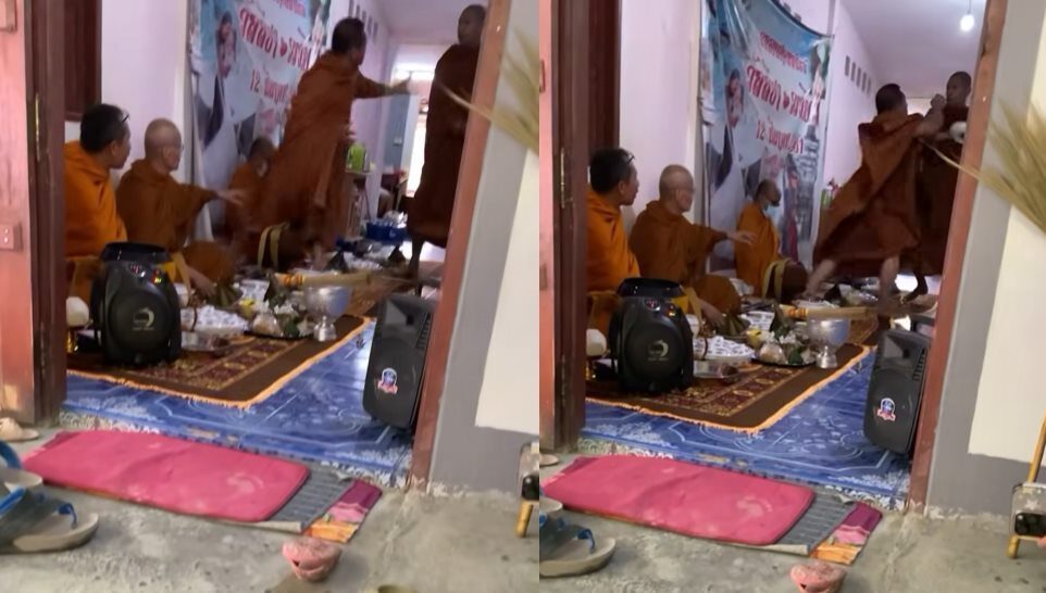 โดยเหตุการณ์ในคลิปนี้ เจ้าของบ้านนิมนต์พระสงฆ์มาทำบุญรอบปีใหม่กับตาและยาย ในขณะที่พระกำลังจะฉันเช้า จู่ๆ พระสงฆ์ 2 รูปได้เปิดศึกกันอย่างเดือด เมื่อหลวงพี่รูปหนึ่งที่นั่งอยู่ ได้ลุกขึ้นไปสาวหมัดใส่พระอีกรูปที่ยืนอยู่ ทำให้พระที่ยืนอยู่ถึงตกใจและจานข้าวหล่นใส่พื้นจนแตก