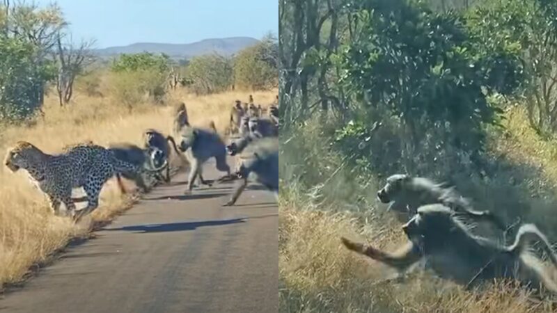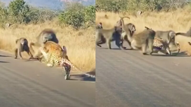 คลิประทึก! เปิดนาทีแก๊งลิงบาบูนสู้ฟัด วิ่งไล่กัดเสือดาว เห็นผลแพ้ชนะชัดเจน