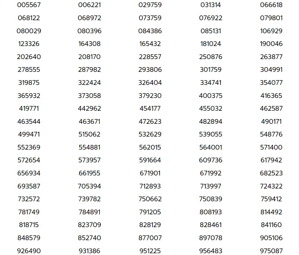ผลสลาก รางวัลที่ 5 มี 100 รางวัล รางวัลละ 20,000 บาท