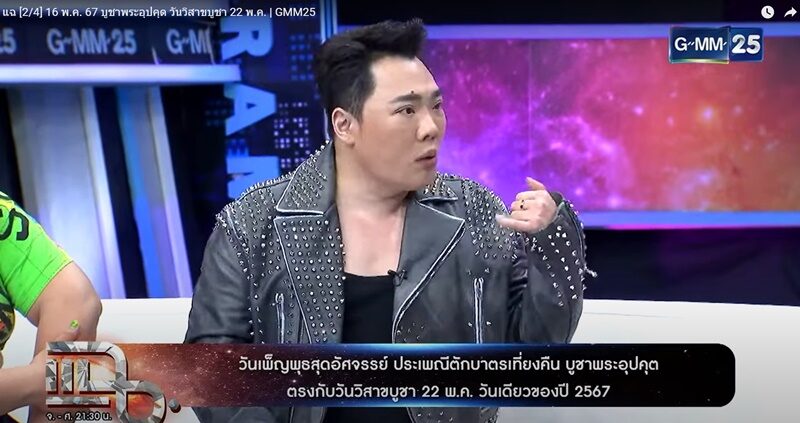 “ตั้งแต่ 14,15,21,25 พฤษภา ดวงจะลงล็อก ทุกราศีเลย พฤษภ กับ พิจิก จะลงล็อกเลย โดดเด่น โดยเฉพาะในวันเพ็ญขึ้น 15 ค่ำ เดือน 6 วันวิสาขบูชานี้ ดาวมาชุมนุมในราศีพฤษภ 6-7 ดวง และเรือนการเงินของราศีเมษ ทำให้ เมษ รวย , พฤษภ เปลี่ยนแปลงดี”