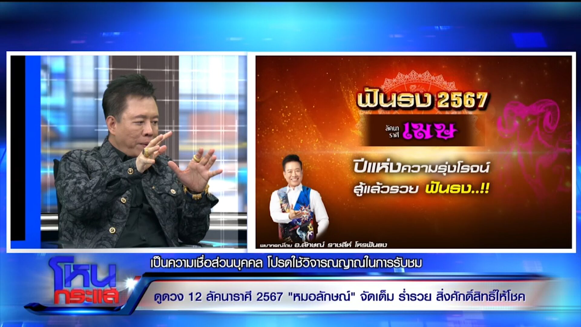 รายการโหนกระแส ออกอากาศวันที่ 1 ม.ค. 67 ดำเนินรายการโดย “หนุ่ม กรรชัย กำเนิดพลอย” ผลิตในนามบริษัท ดีคืนดีวัน จำกัด ออกอากาศทุกวันจันทร์-ศุกร์ เวลา 12.35 น. ทางช่อง 3 กดเลข 33 วันนี้สัมภาษณ์ “อาจารย์ลักษณ์ ราชสีห์” อธิบดีโหร สถาบันพยากรณ์ศาสตร์ ดูดวง 12 ลัคนาราศี ปี 2567 เพื่อเป็นแนวทางดำเนินชีวิตรับปีใหม่