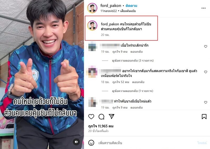 แห่บอกสายไปแล้ว ฟอร์ด ปกรณ์ แฟนเก่าแพรรี่ โพสต์คนใหม่คุยด้วยก็ไม่ชิน ส่วนคนเคยคุ้นชินก็ไม่กลับมา เจอดราม่าไม่จริงใจ อยากให้เขากลับมาก็แสดงความจริงใจ