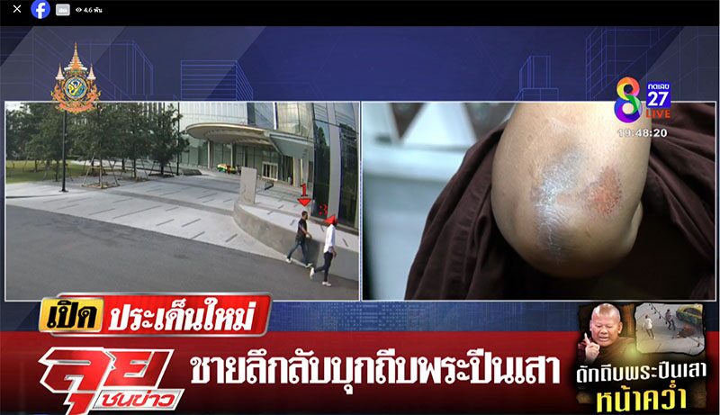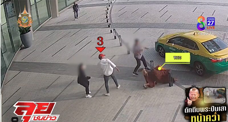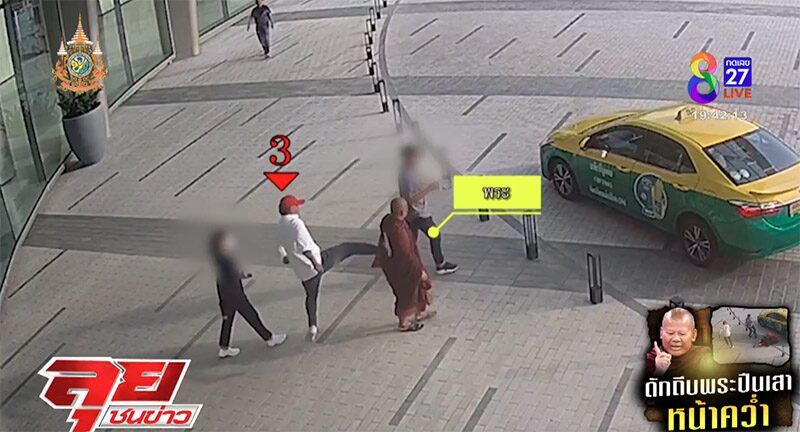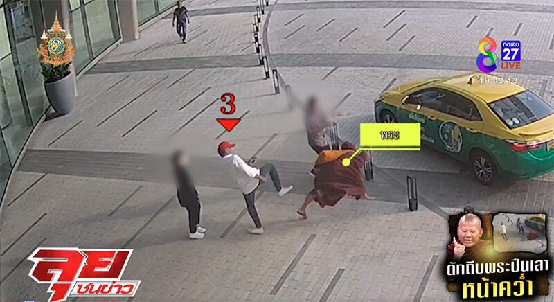 เปิดนาที พระปีนเสา ถูกชายฉกรรจ์ กระโดดถีบกลางหลัง ร่างลอยกระเด็นหน้าคว่ำ ได้รับบาดเจ็บ เช็กวงจรปิดพบพากันมาดักรออยู่ที่ช่อง 8