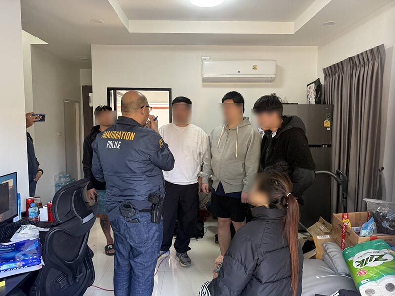 วันที่ 22 ม.ค. 2568 พล.ต.ท.ภานุมาศ บุญญลักษณ์ ผบช.สตม. พร้อมด้วย พล.ต.ต.วริศร์สิริภ์ ลีละสิริ รักษาการ ผบก.ตม.4 (ขอนแก่น) และ พ.ต.อ.สำราญ กลั่นมา ผกก.สส.บก.ตม.4 สนธิกำลังร่วมกับ ตม.อุดรธานี และ สภ.เมืองอุดรธานี เข้าทำการตรวจค้นภายในบ้านเช่าไม่มีเลขที่ ในเขต ต.บ้านเลื่อม อ.เมือง จ.อุดรธานี หลังรับแจ้งว่ามีชาวต่างชาติเข้ามามั่วสุมและทำงานในลักษณะที่ผิดกฎหมาย