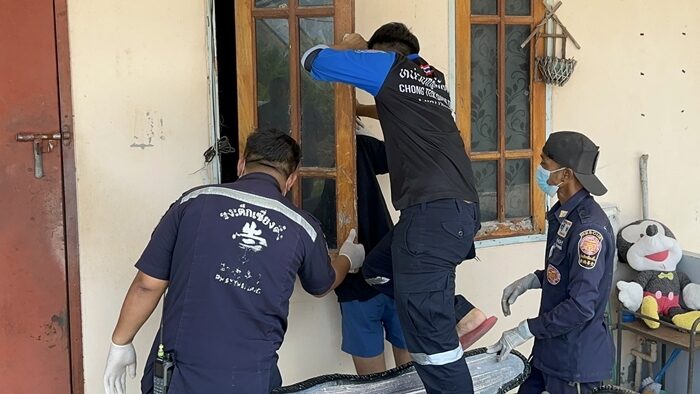 ที่เกิดเหตุเป็นบ้านชั้นเดียวของ นางจันทรา (ขอสงวนนามสกุล) อายุ 69 ปี มีอาชีพเป็นนายหน้าที่ดิน อาศัยอยู่เพียงลำพัง เจ้าหน้าที่จึงได้ใช้อุปกรณ์งัดบริเวณหน้าต่าง ก่อนจะเข้าไปเปิดประตู