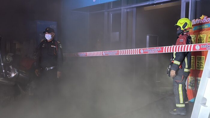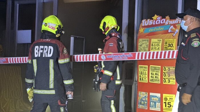 ที่เกิดเหตุเป็นซูเปอร์มาร์เก็ตชั้นเดียว ภายในพบกลุ่มควันจำนวนมากและแสงเพลิง เจ้าหน้าที่ดับเพลิงจึงใช้น้ำฉีดประมาณ 5 นาที สามารถควบคุมเพลิงสงบลง และใช้พัดลมเร่งระบายกลุ่มควัน