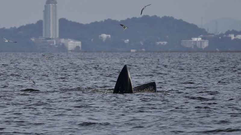 ฮือฮา วาฬบรูด้า แม่ลูก 3 ตัว โผล่เล่นน้ำใกล้หาดบางแสน นักท่องเที่ยวพากันตื่นเต้น